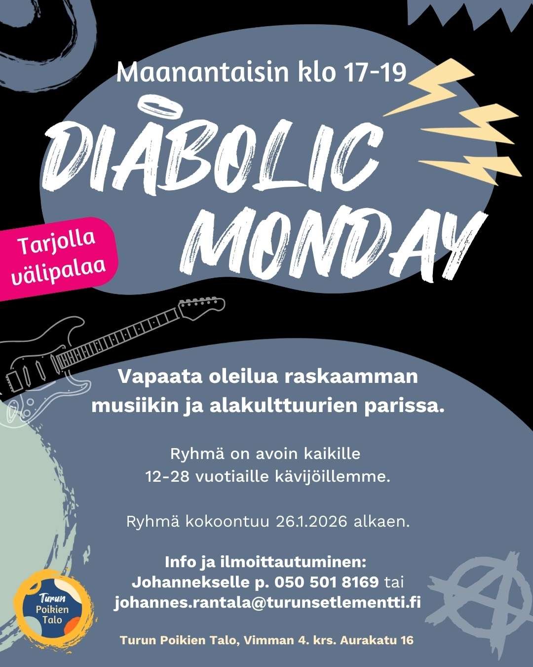 Ryhmä on avoin kaikille 12-28 vuotiaille kävijöillemme.