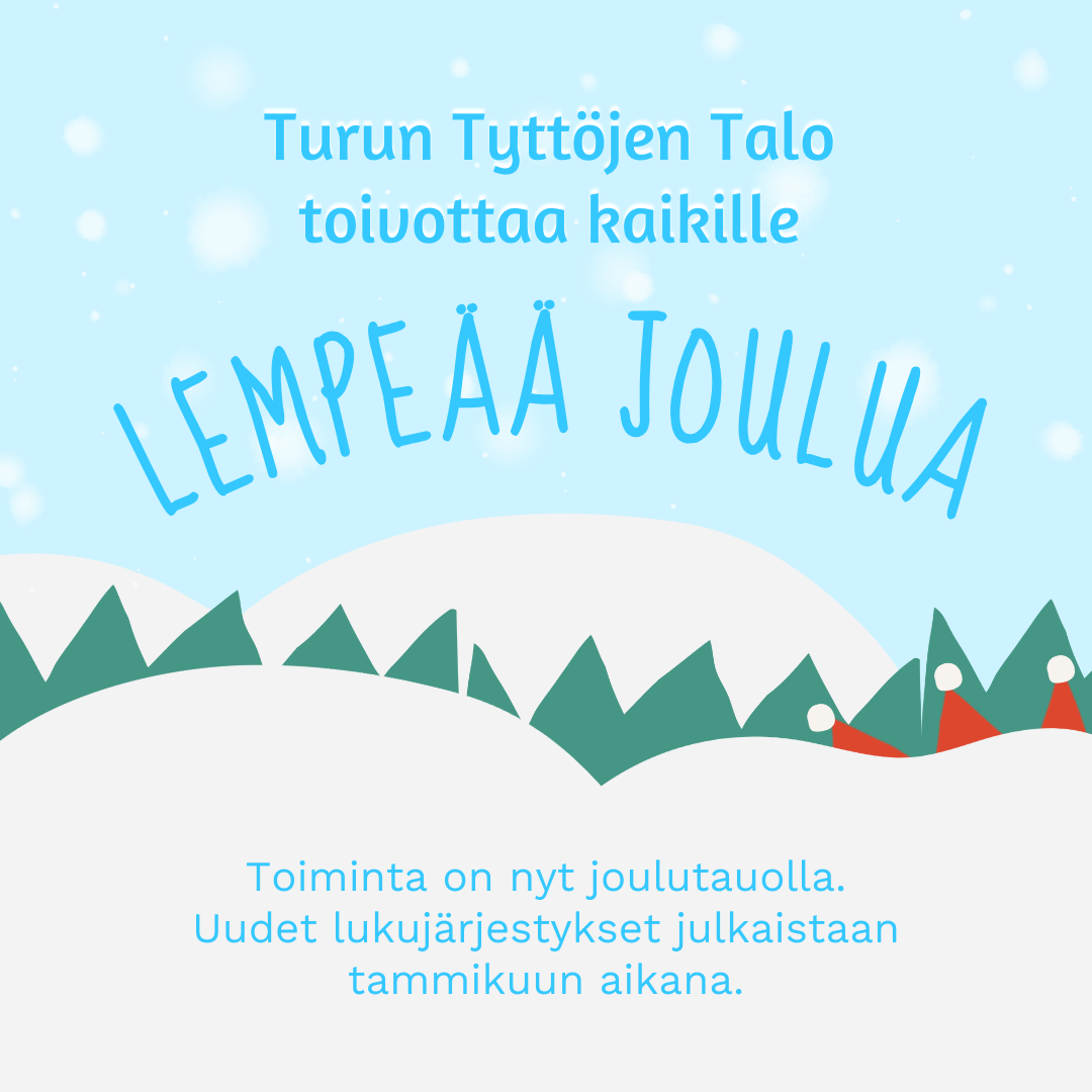 Tyttöjen Talon toiminta jää joulutauolle 12.12. ja Avoin toiminta jatkuu taas tiistaina 20.1. klo 15.