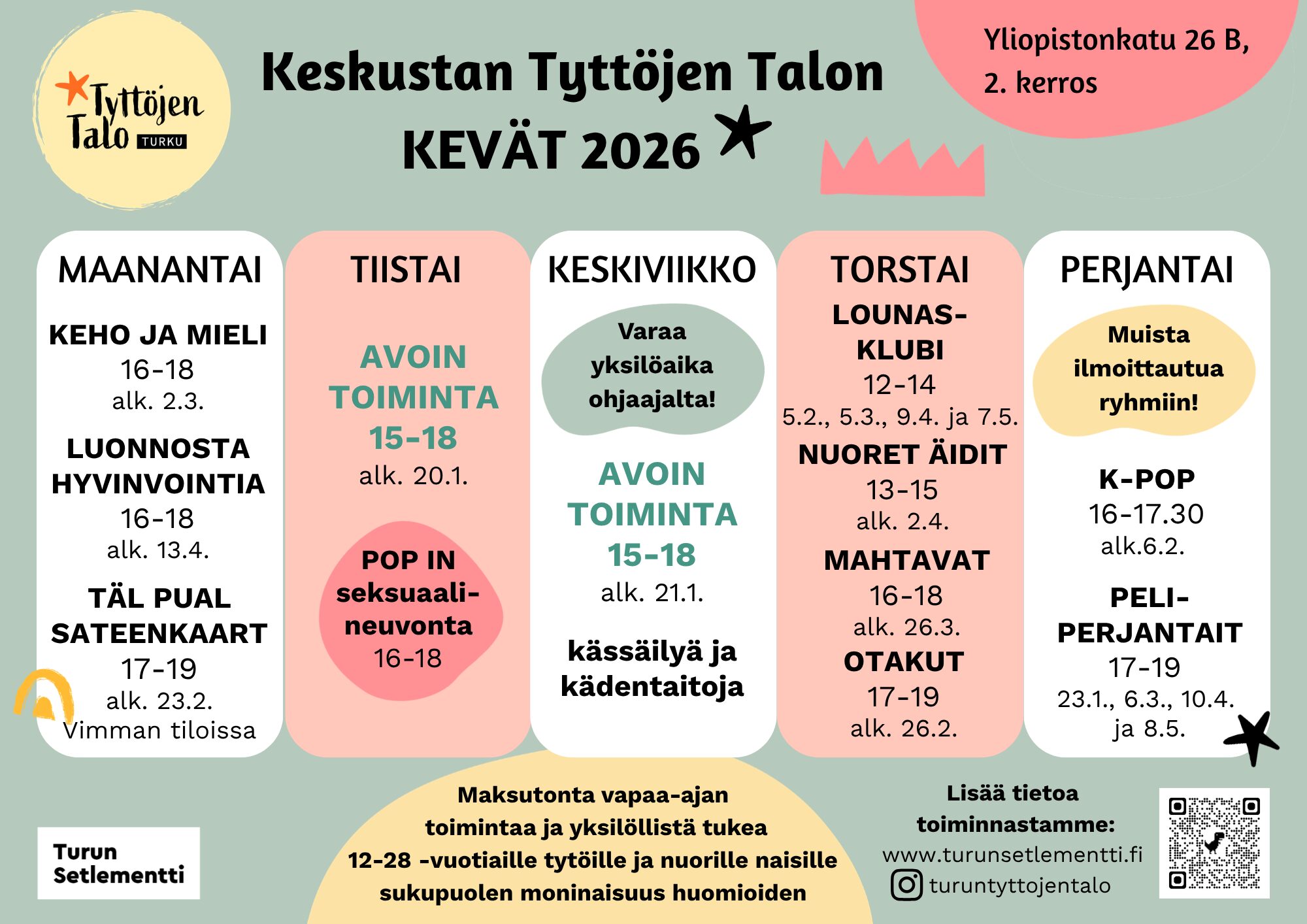 Ajankohtaista tietoa toiminnastamme löydät myös instagramista @turuntyttojentalo
