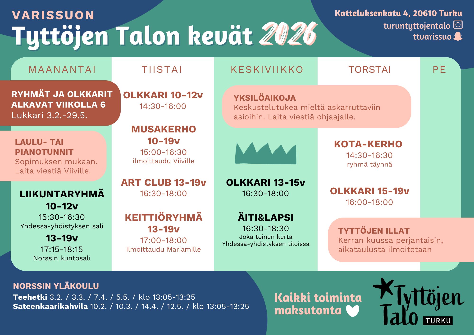 Ajankohtaisimman tiedon toiminnastamme löydät Instagramista @turuntyttojentalo